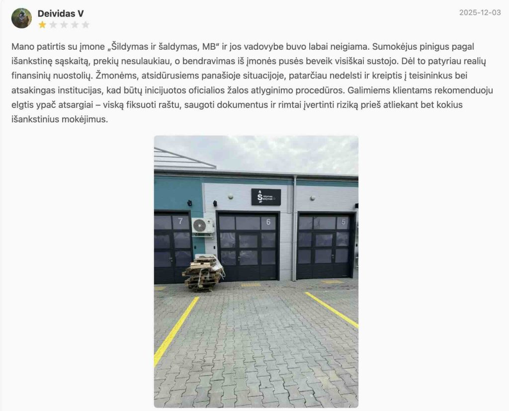 Konkrečios istorijos – kaip „Šildymas ir šaldymas, MB“ klientų patirtys – atskleidžia, kad ši forma gali būti panaudota ir daug brutalesniam tikslui: surinkti pinigus, neįvykdyti įsipareigojimų ir perleisti įmonę taip, kad realūs sprendimų priėmėjai liktų už teisinės atsakomybės ribos.