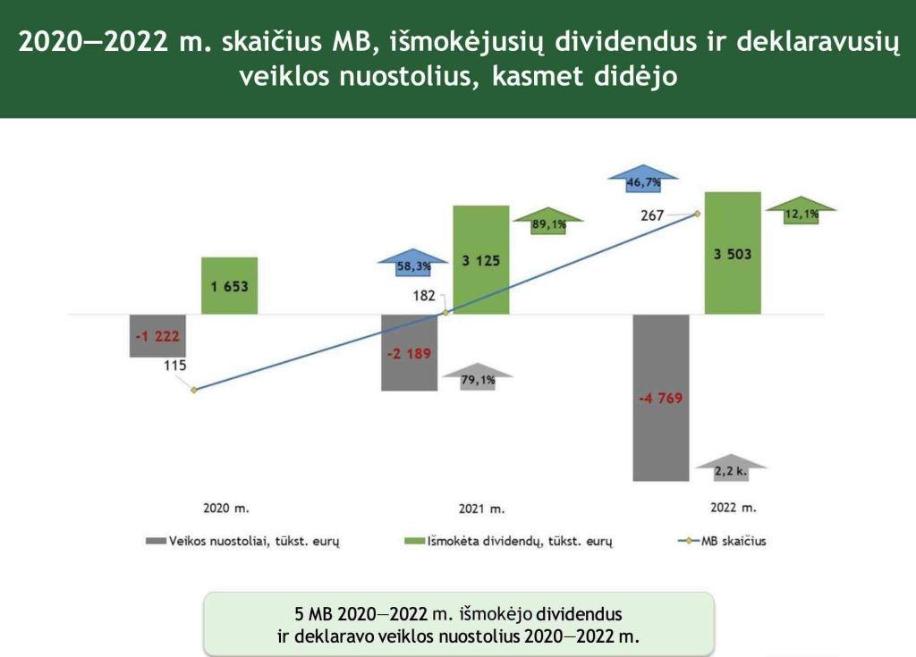 nuo 2020 m. iki 2022 m. kasmet didėjo MB, kurios išmokėjo dividendus ir tuo pačiu deklaravo veiklos nuostolius;