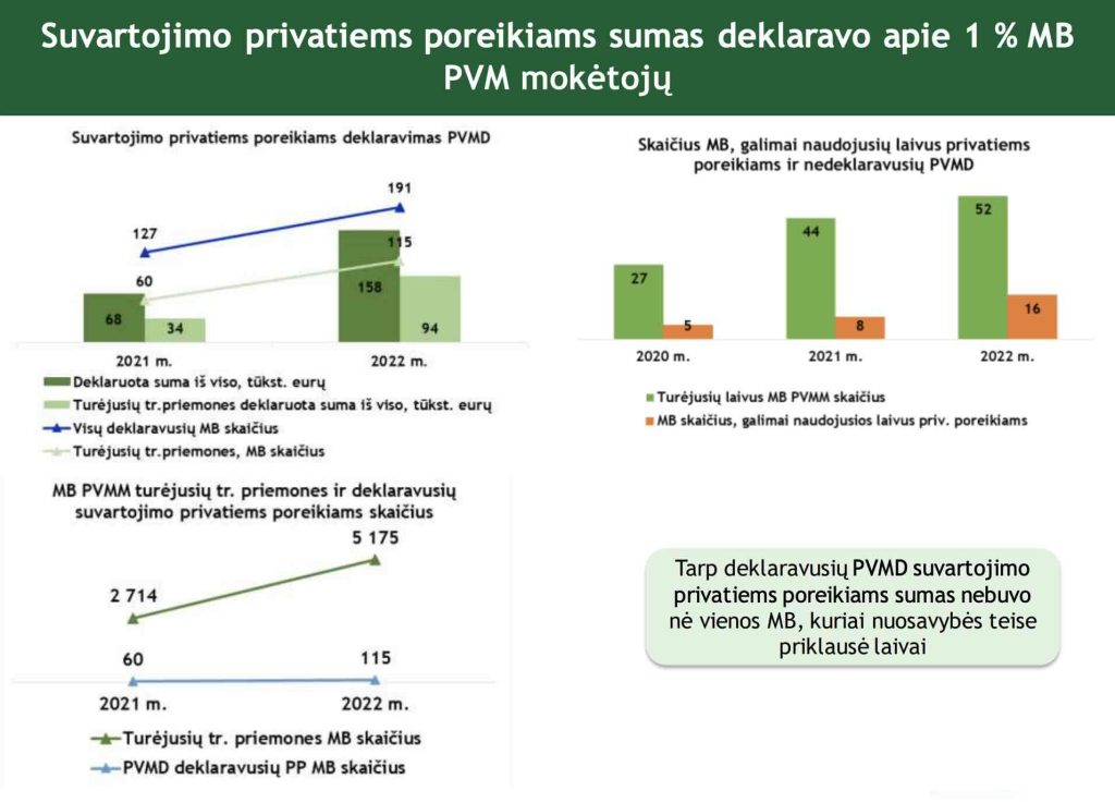 PVM slenkstis 2 240 MB palaiko apyvartą 35–45 tūkst. eurų riboje – arti PVM registravimo slenksčio, ir 67,5 % iš jų nėra PVM mokėtojos. Tai klasikinis modelis dirbtinai dalinti veiklą, kad būtų išvengta prievolės mokėti PVM.